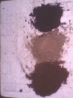 土方色澤比較~三種類型的土~黑土比較廉價是一般土地回填可用~黃土比起黑土價值還要好是種植的~花土比較貴因為可遇不可求~